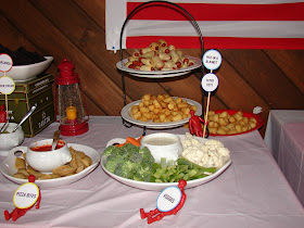 I found the red and blue "army men" at the Dollar Tree and also the big army guys we used to hold the food tags.